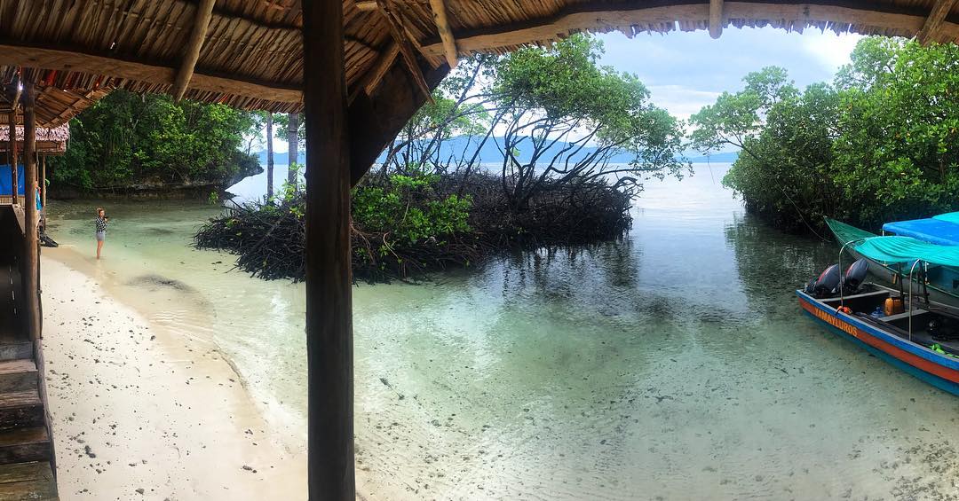 Our Gam island bungalows are surrounded by the blue water mangroves connected to Gam island. This unique location offer solitude from the crowds of mass tourism and because it is at the centre protected area and mangroves, the area offers high concentration of amazing biodiversity from big fish to small invertebrates.